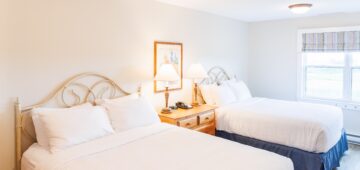 Our deluxe standard room, some with a view of the golf course, is perfect for the business or vacationing traveller. Our deluxe standard rooms feature two queen beds, complimentary Wi-Fi, access to the indoor pool and sauna, and a refreshing stand-up shower.
